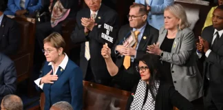 Anggota DPR AS Angkat Poster ‘Penjahat Perang’ saat Netanyahu Pidato di...